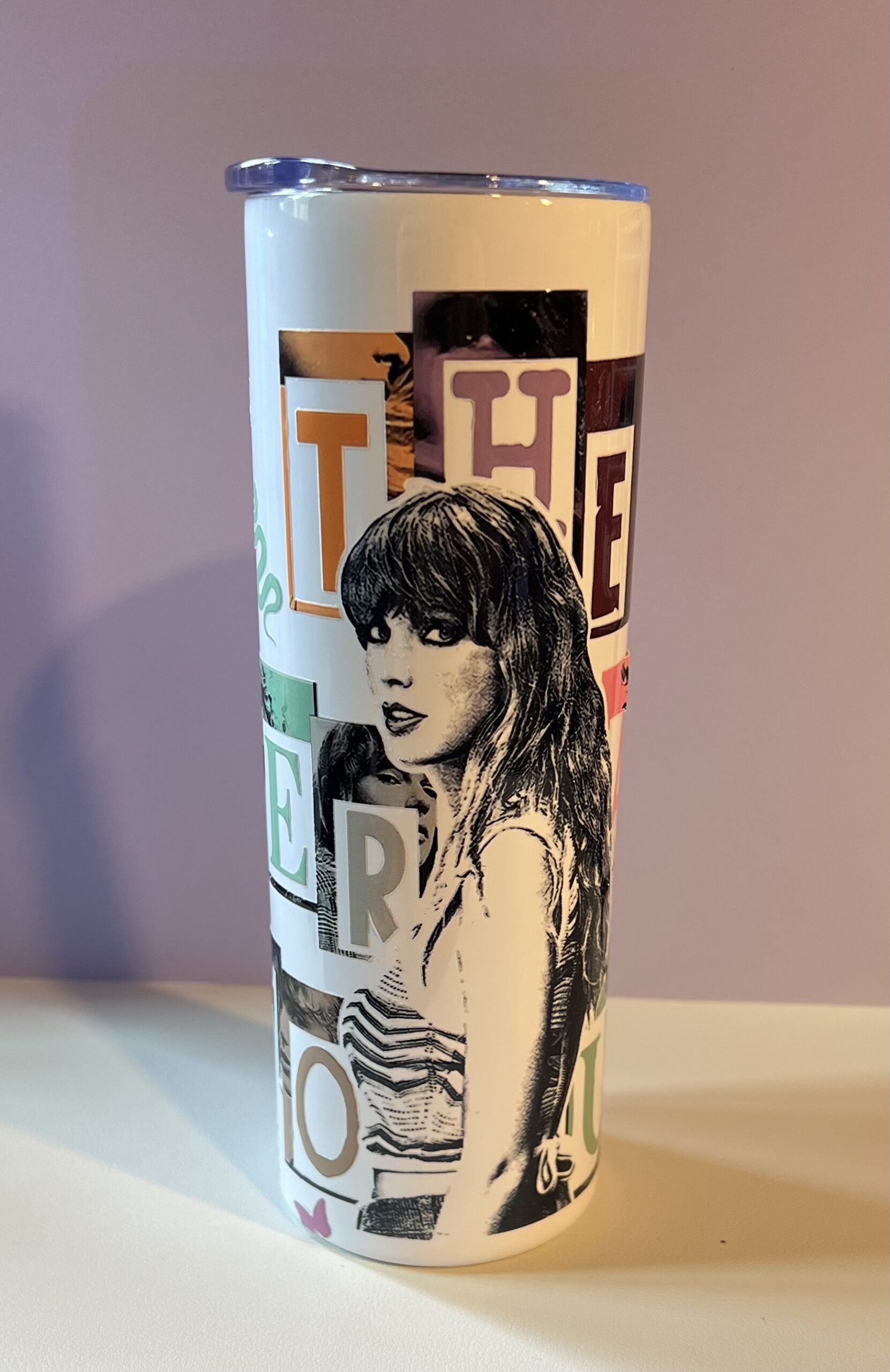 20oz. White Skinny Stainless Steel Tumbler- Music