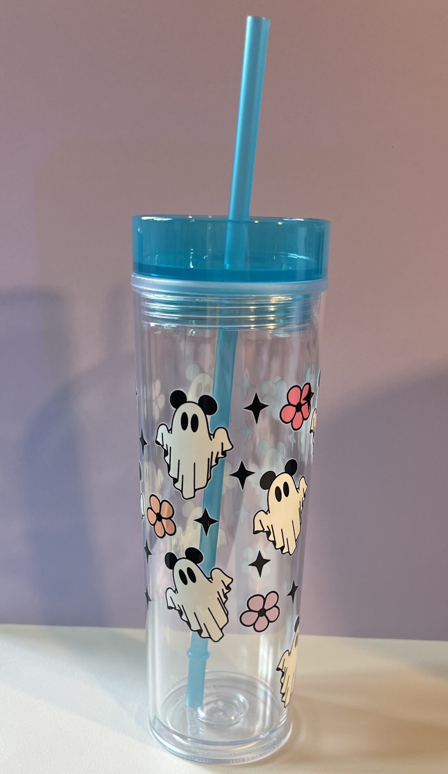 20oz.Clear Skinny Tumbler with Teal lid- Ghost with Mouse Ears