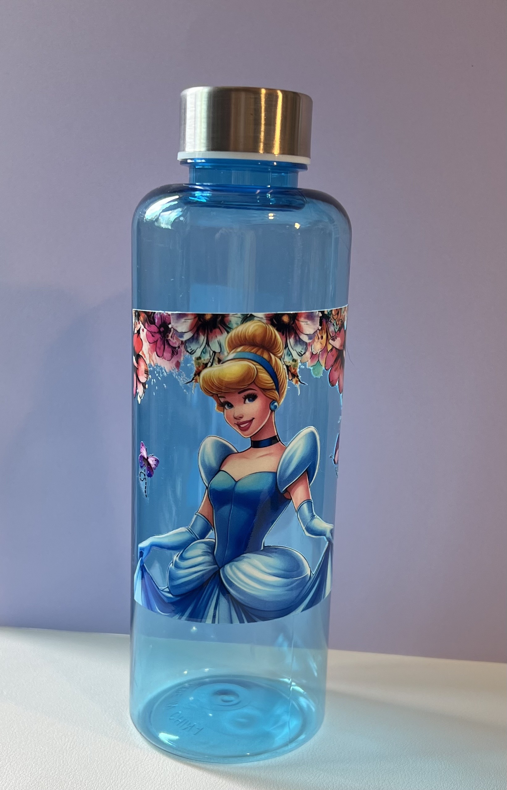 30oz. Blue Plastic water Bottle with Blue Princess