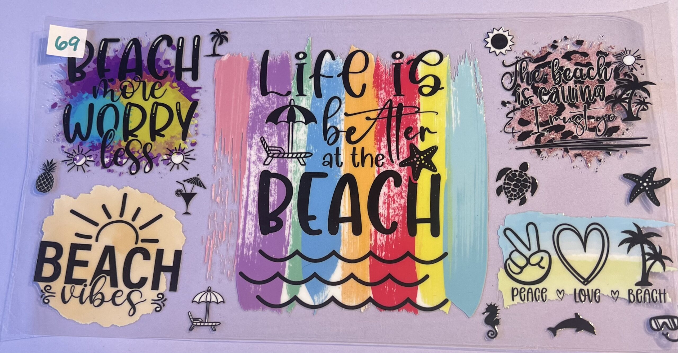 Beach theme wraps will fit on any cup except the 40oz. wraps unless it can be deconstructed