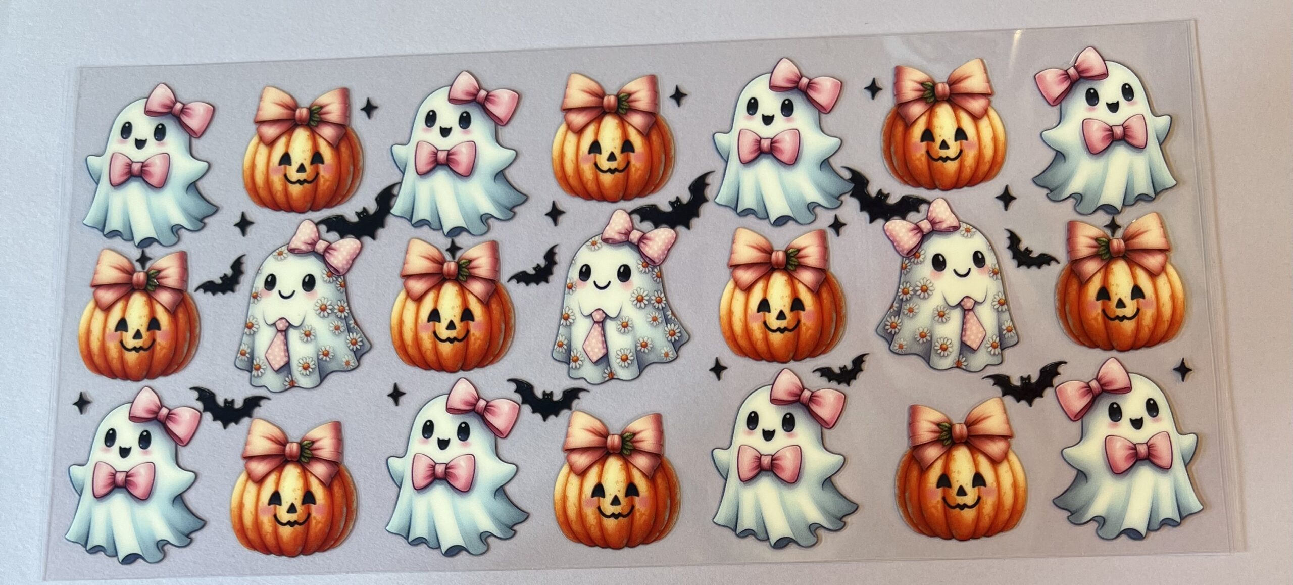 Halloween Theme-White Ghost with Pink Bow ties and Ties, Pumpkins with Pink Bows